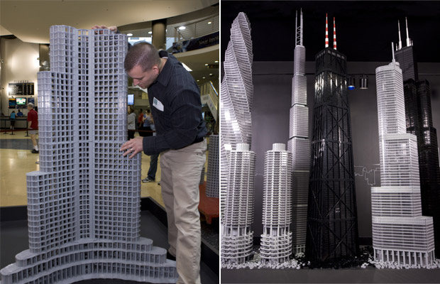 Visitors to the MSI will get to see more than 15 skyscrapers designed and built by certified LEGO professional Adam Reed Tucker. The designer for the Frank Lloyd Wright Lego kits we lusted after recently, his amazing creations on display at the museum soar as much as 10-feet high, depicting local landmarks like the Sears Tower, Marina City and Trump Tower as well as China's Jin Mao Tower, the St. Louis Gateway Arch, Seattle Space Needle, and the Burj Dubai Tower. And what might end up being the tallest version of the Chicago Spire that ever gets completed.