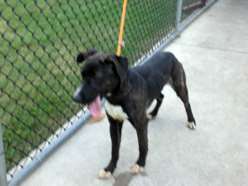 Inga is one very sweet, fun, and happy go lucky puppy dog. She has a beautiful brindle and white coat, an adorable white paint splotch above her nose, white chest, and cute little white boots on her paws! Her striking good looks are matched by her wonderful disposition..She is very affectionate and loves to cuddle.