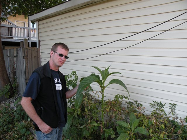 Phillip Foss with the tobacco plants.