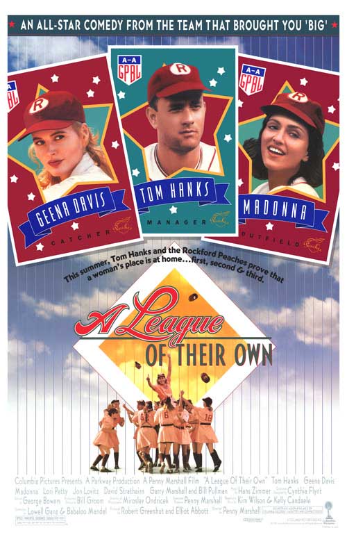 Tom Hanks' delivery of that line is one of the most memorable baseball moments in movie history (along with Roy Hobbs home run into the lights in The Natural, Lou Gehrig's "I consider myself (myself) the luckiest man (man) on the face of the earth (the earth)" from Pride of the Yankees, and every frame of Bull Durham), but it should not overshadow the rest of what Penny Marshall's A League of Their Own has to offer. The story of an female professional baseball league created initially to maintain interest in the sport as the MLB's talent pool was thinned out due to World War II, both A League of Their Own and the real-life All-American Girls Professional Baseball League captured much more attention than was anticipated. Nearly twenty years later, Geena Davis, Madonna, Rosie O'Donnell may not sound like a murderer's row of acting talent, but the film holds up among the better baseball movies ever made and remains remarkably enjoyable.