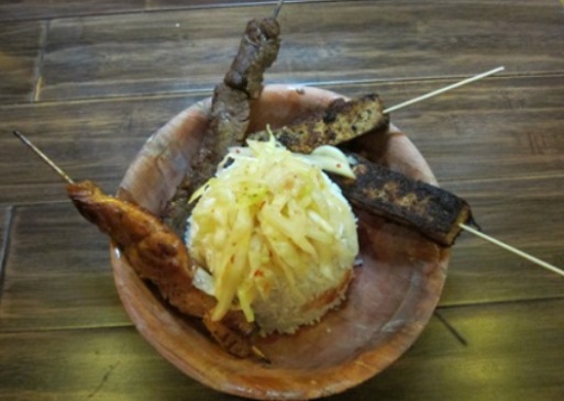 Spotting our initial hesitation as we stood outside the window, some smiling patrons waved us in and urged us to put our money where our salivating mouths were. By the time we arrived, Skewerz had already sold out of the ahi tuna and the mahi mahi, which the aforementioned neighborly customers agreed deserved top billing despite technically being seafood, not meat, on a stick. But we were fairly impressed with the lilikoi salmon glazed in passion fruit, filet mignon, and red curry charred tofu—enough so to look the establishment up on GrubHub when we reached home to make sure we could easily satisfy an irrepressible late-night craving.