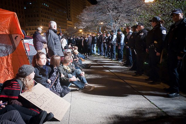 Today a judge dismissed the charges against more than 90 demonstrators arrested last October when Occupy Chicago made two attempts to set up an encampment in Grant Park. More than 300 protesters were arrested in the park last year and charged with violating city park curfew. Most opted to for a community service deal with the city, but the National Lawyers Guild filed suit on behalf of 92 demonstrators to dismiss the charges on grounds that they were unconstitutional.