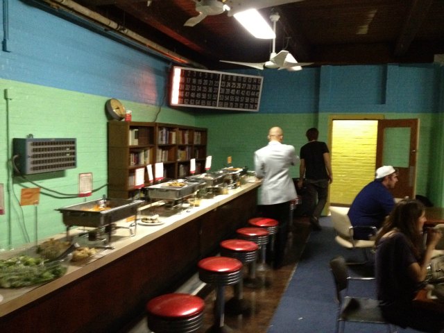 Ramova Grill's former counter, holding a buffet of food, Sept. 8, 2012. (Chuck Sudo/Chicagoist)