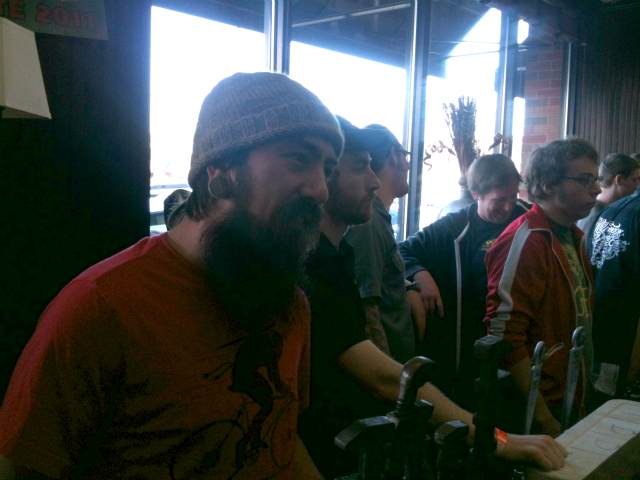 Beejay Olson of Pipeworks Brewing pours some samples while chatting up guests at Goose Island Stout Fest 2012. (Chicagoist/Chuck Sudo)