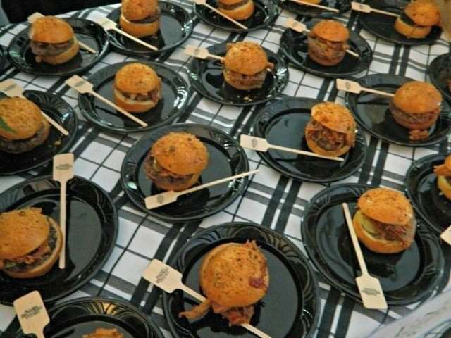 JR Luna, LUXBAR50/50 Slider: Chuck and brisket mix burger, smoky pulled roasted pork butt and shoulder, and Seedling Farms apple cider BBQ sauce on a brioche bun topped with crispy pork rind bits.
