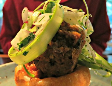So now we’re enjoying meatballs afresh at restaurants like Cichetti, where Nonna’s meatballs come with red sauce and nothing else as an appetizer that’s a small meal unto itself without any carbs in sight. We’ve also feasted on them as the centerpiece of the chef’s special at Perennial Virant, where they’ve been laden with savory beer jam and ensconced in fresh string beans and yams. Likewise at theWit’s State and Lake Chicago Tavern, the open-face beef cheek meatball sits all but aristocratically atop a giant onion ring while wedged tightly within an asparagus salad.