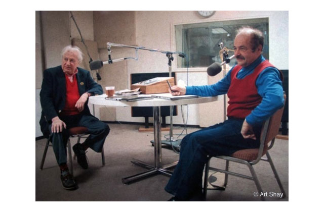 Studs Terkel and Art Shay discuss Shay's 1988 book Chicago's Nelson Algren on WFMT-FM. (Photo credit: Art Shay, used with permission.)