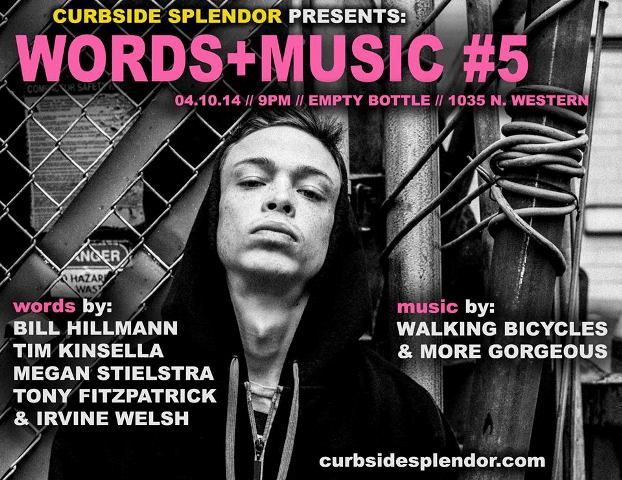 Curbside Splendor Publishing celebrates the release of new books by Tim Kinsella, Bill Hillmann and Megan Stielstra with "Words + Music #5" 9 p.m. April 10 at Empty Bottle. Joiing Stielstra, Hillman and Kinsella for the evening of readings and music are special guests Irvine Welsh and Tony Fitzpatrick, with music by The Walking Bicycles and More Gorgeous. RSVP for free entry here, otherwise general admission is $8.