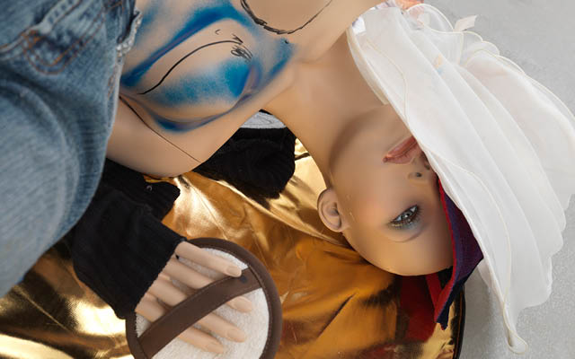 Schauspieler (Actors) (detail), 2013. Mannequin, fabric, shoes, plastic, lacquer, mirror, and color print on paper. Courtesy Galerie Buchholz, Cologne/Berlin. Photo: Jens Ziehe, Berlin © Isa Genzken.