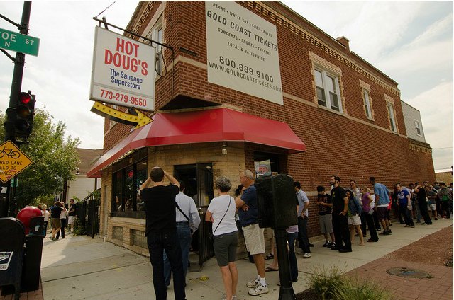Most studies on queues in restaurants show they are most common in tourist areas, but they also occur when restaurants have few substitutes (try finding another Macanese restaurant in Chicago besides Fat Rice, or Cronuts besides at Dominque Ansel… you can’t), or have generated significant buzz. Or both. The infamous lines at Hot Dougs have recently gotten even longer because people know it's closing, possibly forever, soon, and they might not get another chance to eat there ever again.