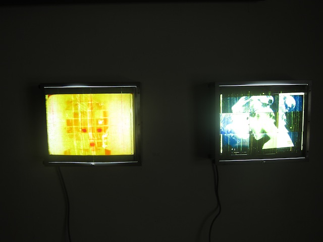 The room hummed like an experiment while we digested Kristin Reeves' exhibition, "What Is This Feeling" at Antena in Pilsen. Her use of medical grade x-ray boxes give her work a multidimensional intensity. In "Baby Falling Apart," there is an image of an infant falling into pieces, and the vibrant pixelated colors tell a dire tale with the infant appearing to be coming apart at an atomic level.