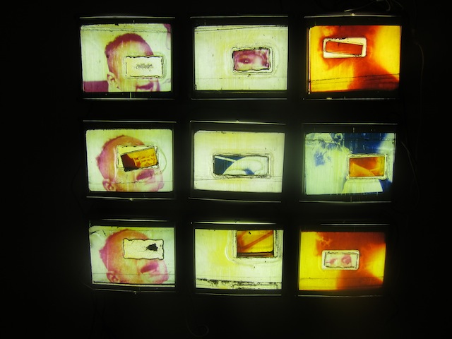 In the a composition of nine boxes, "What Is This Feeling #4-#11," I see an evolution in form. The grid mimics the fracturing seen earlier, but the geometry has grown larger, more engrossing, and more intimidating.