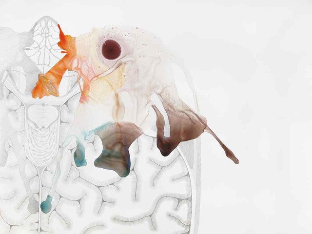A quietly intense exhibition currently on view at Packer Schopf Gallery showcases the work of two artists who analyze intimacy and interiors. Vesna Jovanovic’s Foreign Bodies and Michael Tegland’s Shimmer deliberate actively on the gallery walls. The result of their studies, and what makes up the images and forms they each devise, express an intriguing juxtaposition. The flowing anatomical pastel “portraits” of Jovanovic’s work interact across the gallery with Tegland’s monochrome process-laden works of latex and graphite on birch wood panels.